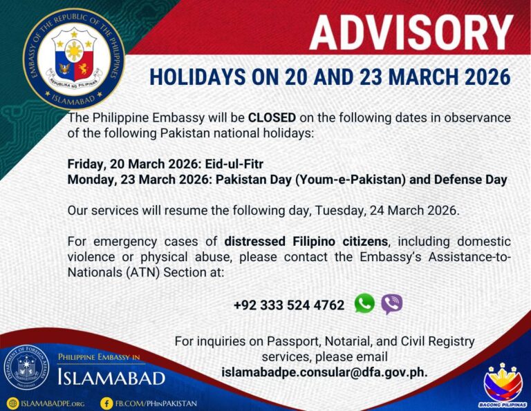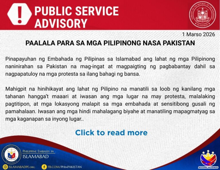 Paalala Para sa Mga Pilipinong Nasa Pakistan
