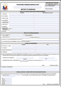 A Report of Marriage must be filed for marriages contracted abroad involving at least one Filipino citizen.