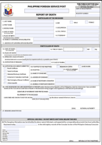 A Report of Death must be filed for Filipino citizens who passed away abroad. This ensures proper recording of the death with the PSA and facilitates settlement of estate, insurance, and other legal matters in the Philippines.