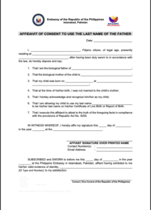 - Affidavit of Consent to Use the Last Name of the Father (AULF)