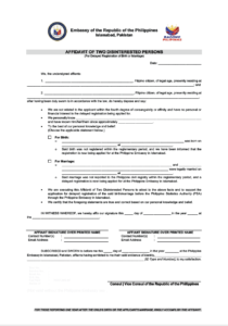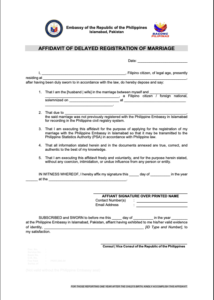 The Philippine Embassy in Islamabad provides civil registry services to Filipino nationals in Pakistan, in accordance with Philippine laws and regulations.