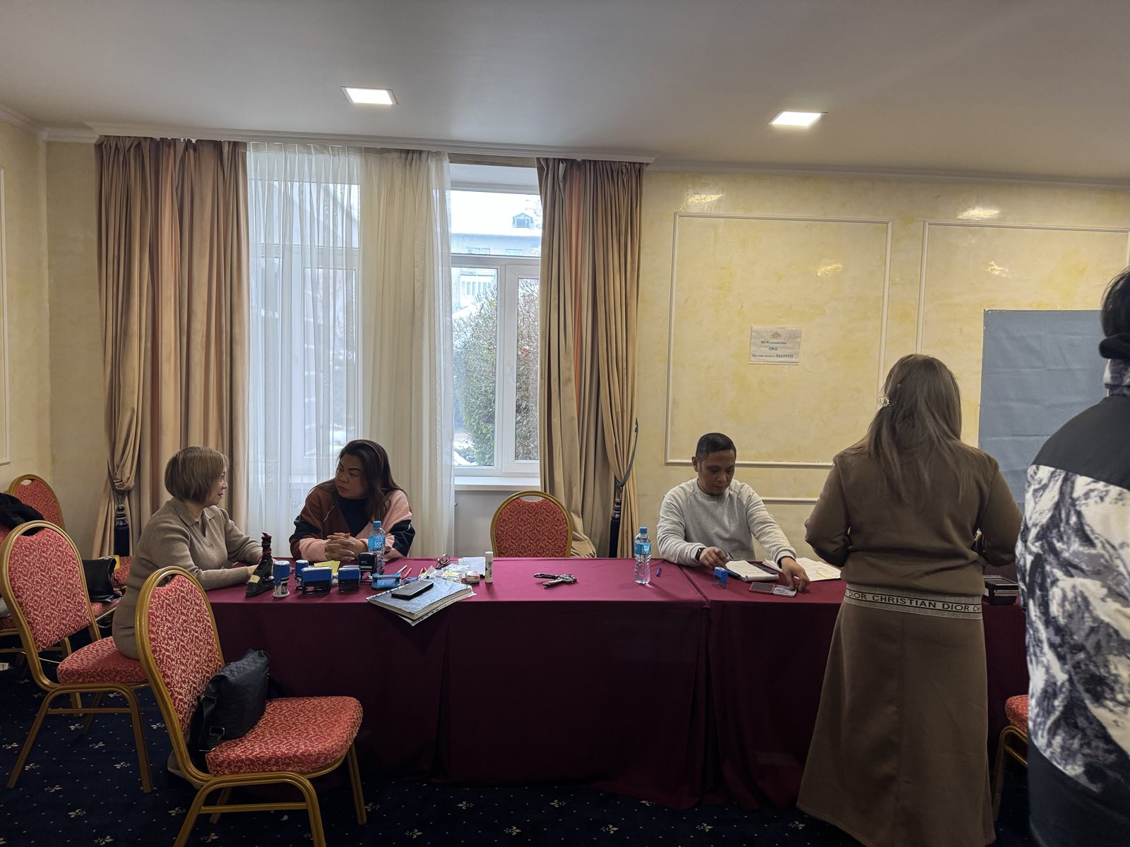 A five-member Embassy delegation, composed of Ms. Rain Mendoza, Mr. Manuel Ramos, Ms. Mary Grace Recolizado, Ms. Danica Carla Mae Torres, and Col. Renato Narag, traveled to Bishkek to deliver frontline government services to over 20 Filipino nationals, including Filipino soldiers and civilians residing and working in the Kyrgyz Republic. The mission provided vital consular services such as passport processing, civil registry services, acknowledgment of employment contracts, and overseas voter registration, ensuring continued access to essential documentation and political participation for Filipinos abroad.